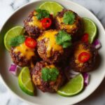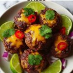 These Spicy Mexican Donkey Balls are flavorful, juicy meatballs packed with bold Mexican spices, melted cheddar cheese, and crunchy tortilla chips for texture. They’re seared to a golden brown on the stovetop and finished in the oven with a spicy tomato and green chili sauce. Perfect as a hearty appetizer or a main dish served with lime wedges for a zesty finish.