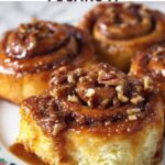 - Cool and Serve: Allow the buns to cool for a few minutes after baking. Run a knife around the edges of the pan and invert the buns onto a serving dish to reveal the glaze and pecans on top. Serve warm and enjoy!