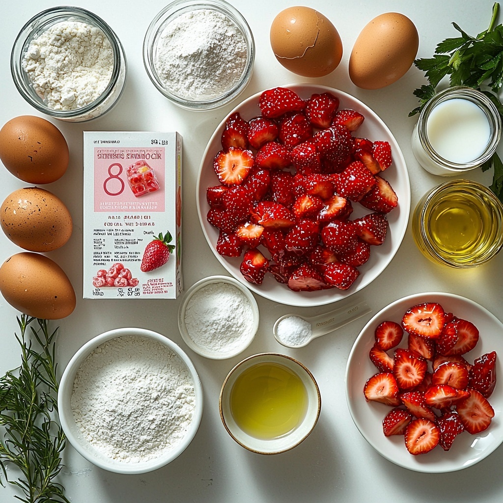 This cake pairs beautifully with a scoop of vanilla ice cream or a dollop of softly whipped cream to elevate each bite. For a brunch or tea-time scenario, fresh berries and a light citrus salad complement the sweet strawberry flavors perfectly without overpowering them.