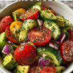 If you are looking to brighten up your mealtime with something healthy, flavorful, and totally fresh, I cannot recommend this Tomato Cucumber Avocado Salad Recipe enough. It’s the kind of dish you’ll want to prepare again and again because it’s just that good and versatile. Give it a try and watch it become an instant favorite in your kitchen!