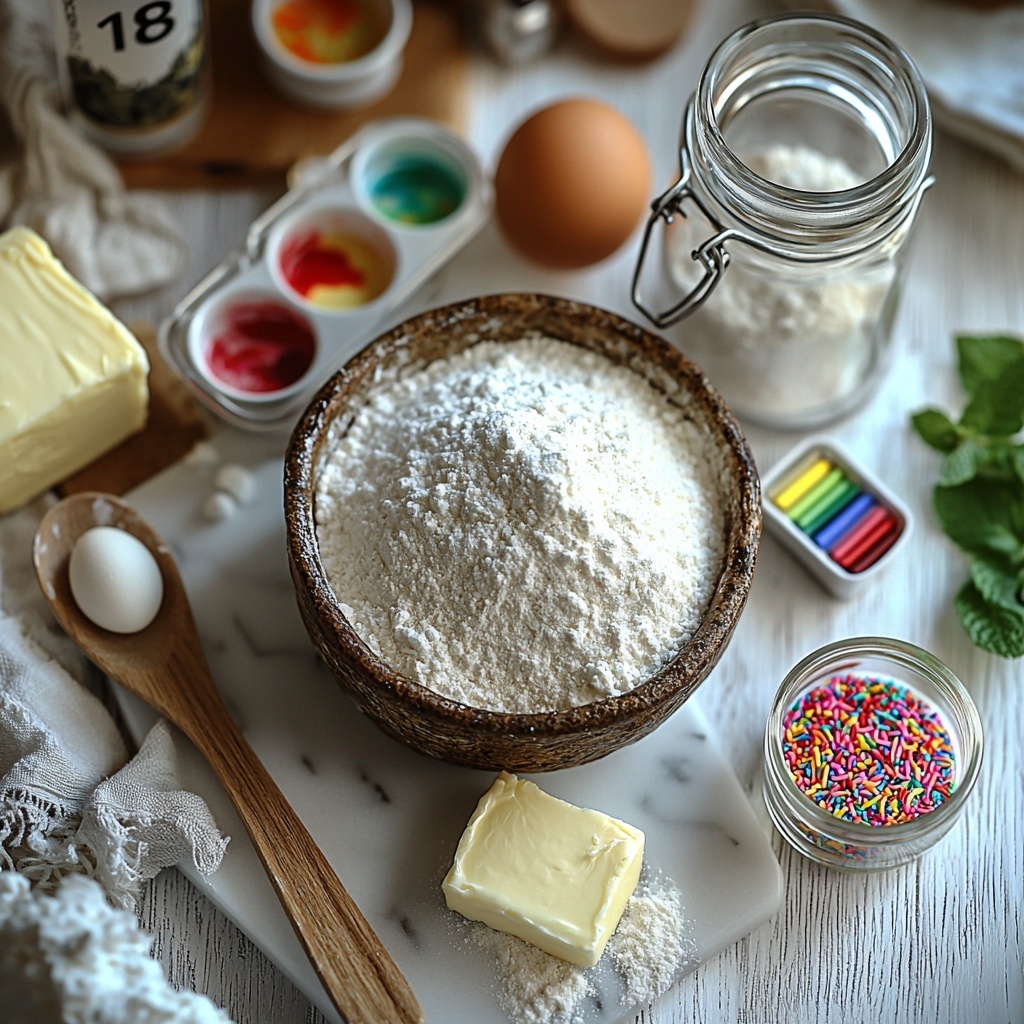 These ingredients are simple pantry staples, but each one plays a vital role in creating the perfect texture, taste, and vibrant look of your Unicorn Cookies Recipe. From the creamy butter giving richness to the sprinkles adding that iconic pop of color, every element is essential.