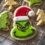 - Decorate Cookies: Use a piping bag or a Ziploc bag with a small corner snipped off to pipe the icing onto cooled cookies. Decorate with sprinkles, vanilla sugar, or edible gold dust as desired. For snowflake cookies, pipe lines and dots to enhance the design. For Christmas trees, fill in the shape with icing and sprinkle with vanilla sugar. For the Grinch, use edible gold dust for the eyes and add details like eyebrows and mouth with dyed icing. Allow the icing to set completely, about one hour, before serving.