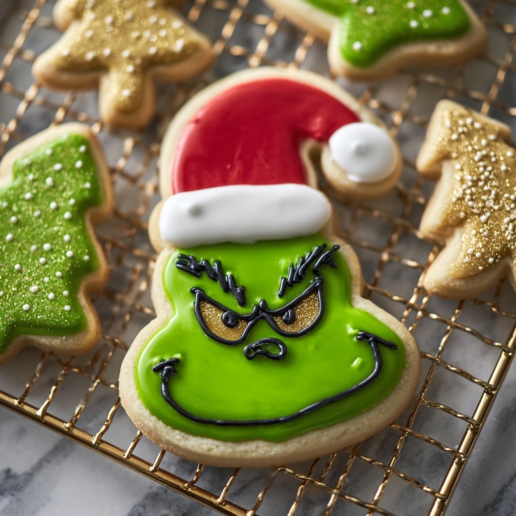 Fill a piping bag or a resealable plastic bag with your icing. Pipe delicate designs onto cooled cookies—snowflakes deserve intricate dots and lines, Christmas trees look magical when filled and topped with vanilla sugar, and the Grinch can be brought to life with edible gold dust and fun facial details. Let the icing set fully for about an hour before serving to enjoy flawless finishes.