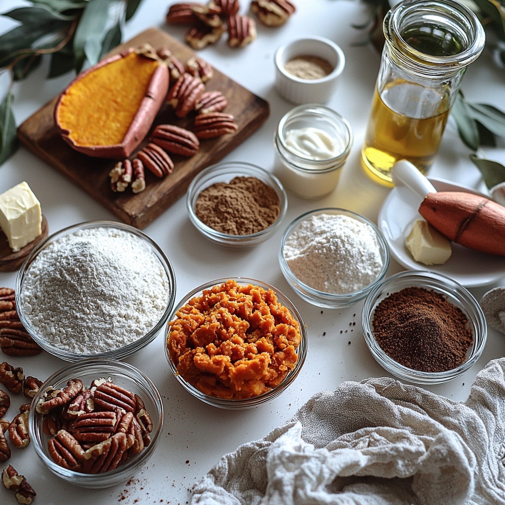 The magic of this cake lies in its simple yet thoughtfully chosen ingredients, each playing a crucial role in creating its distinctive taste, texture, and beautiful color. From pecans providing crunch to the sweet potato puree that lends moistness and depth, every element is essential.